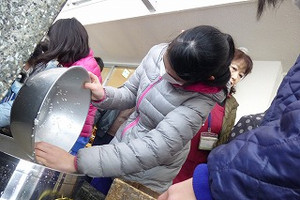 役場産業課からお話をいただいたのがおよそ1年前。薪を燃料に釜でご飯を炊く体験が出来ると楽しみにしていました。神戸大学名誉教授の保田茂さんを講師に来ていただき、大切に作ってきた「ゆりかご米」を炊きました。このゆりかご米は品種は「コシヒカリ」です。炊きあがったご飯の表面には「カニ穴」がぽつぽつと開き、ふっくらとしてかむと甘ーい味が口いっぱいに広がりました。この日のために役場産業課の三宅里美さん・奥村知行さん、環境安全課の井上尚志さんはじめ多くの方にお世話になりました。当日は福井県安全環境部企画幹野坂雄二さん、「里研」の吉田次長、坂川さん、土橋さんはじめ県の多くの関係者の方々にも来校いただきました。