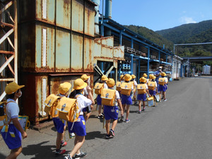 初めて見る工場の様子に目を輝かせる子どもたち。
