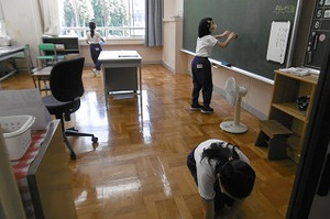 ・教室にいる場合は、机の下に隠れる。