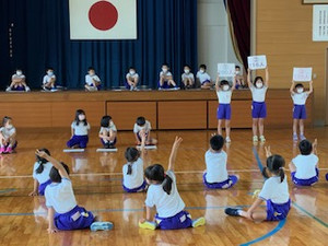 全校児童が集まって密になることを避けるため、